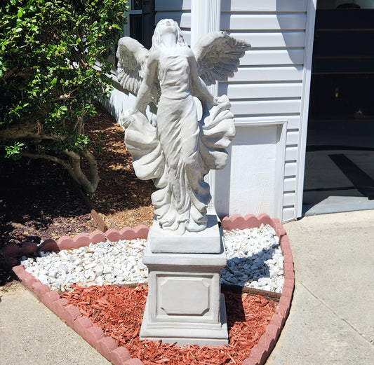 Outdoor XL Flying Angel Concrete Statue with Pedestal