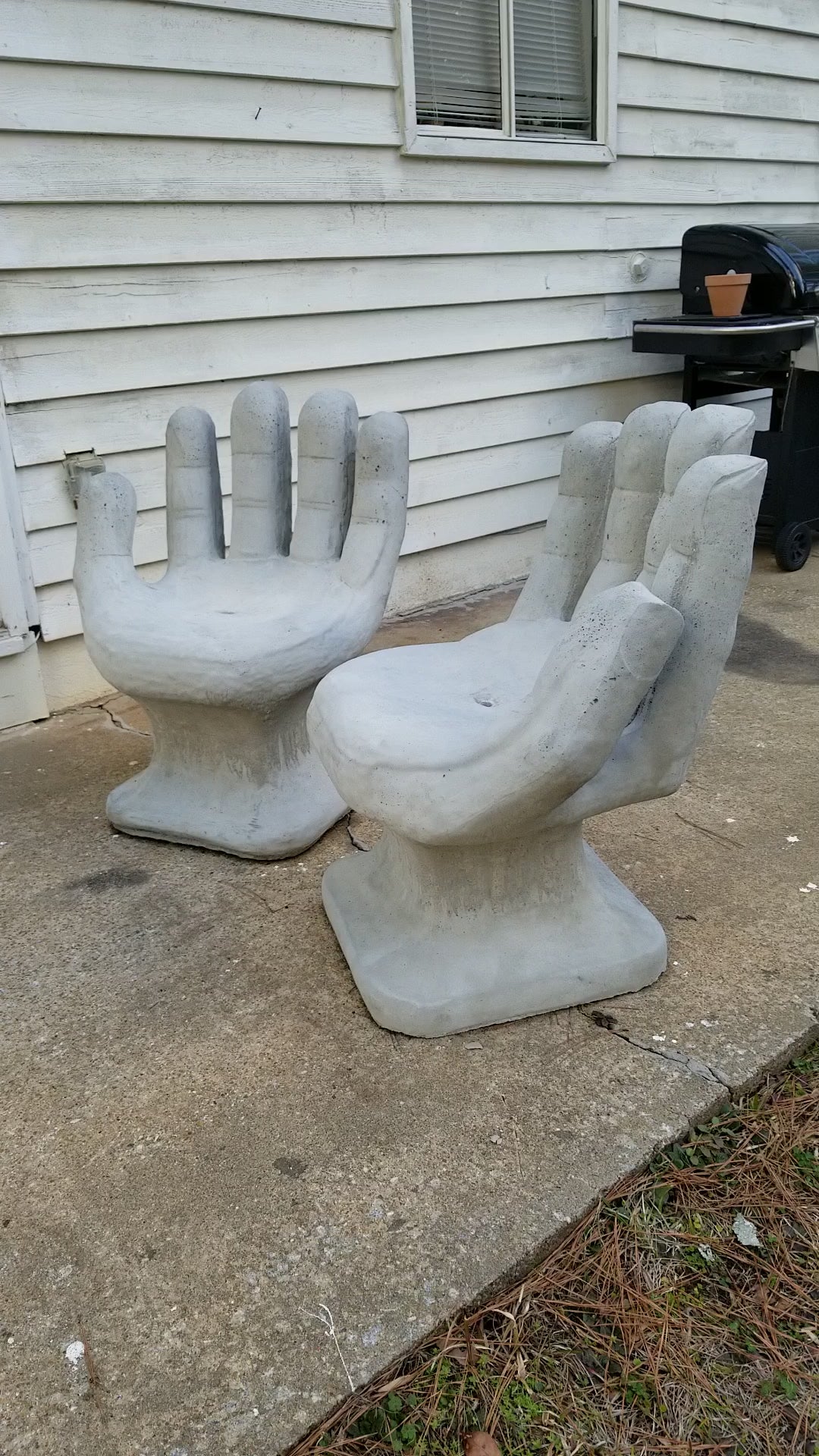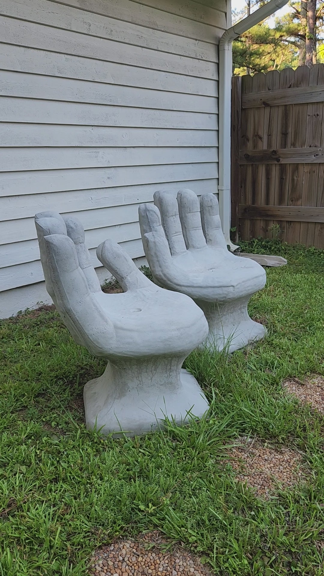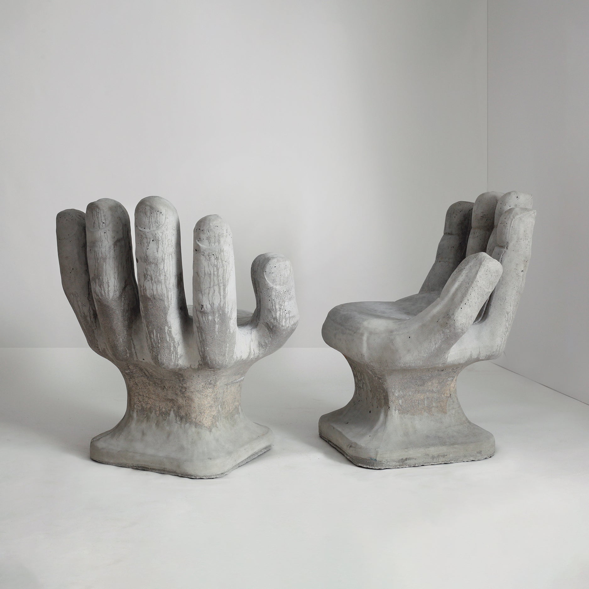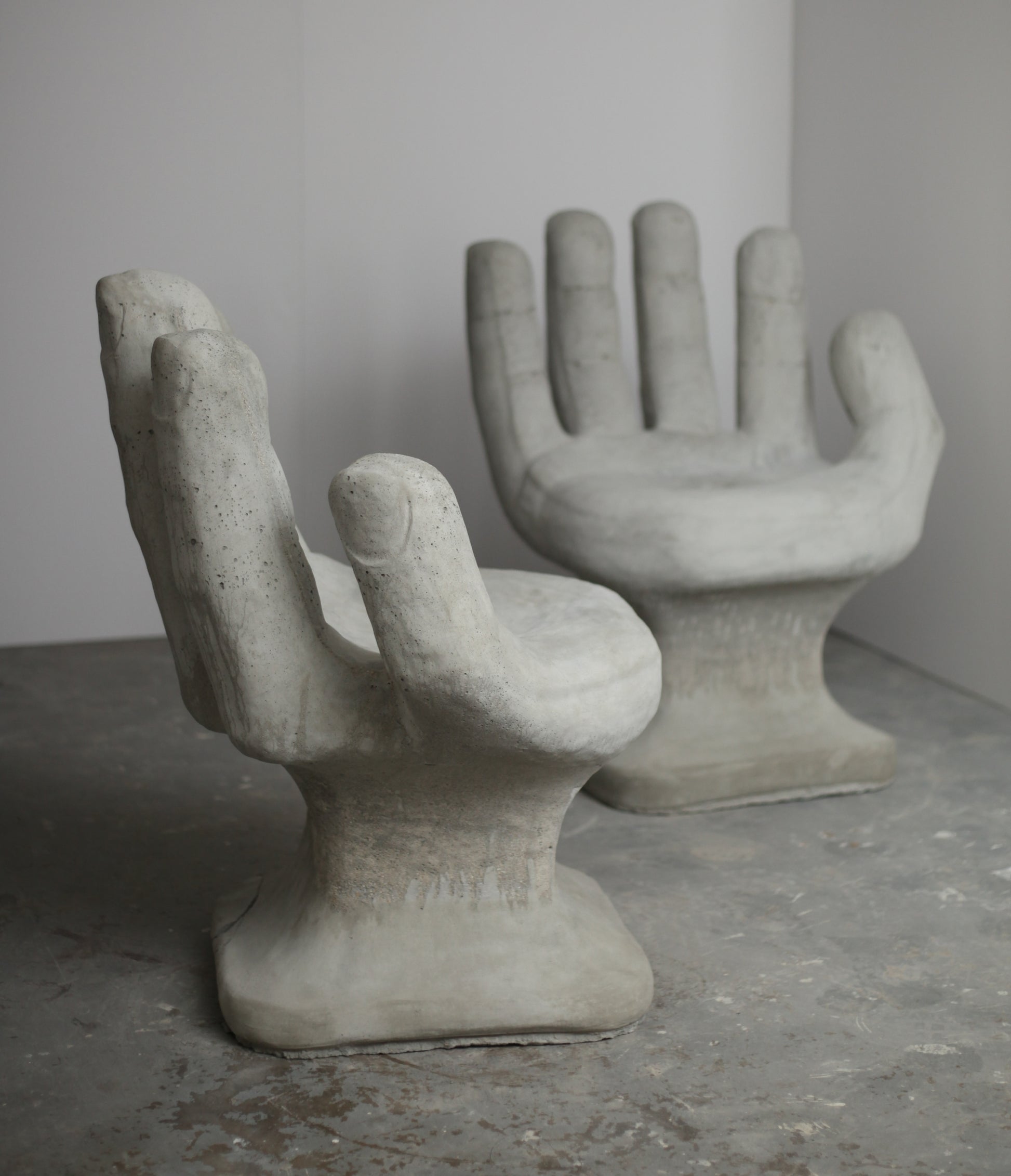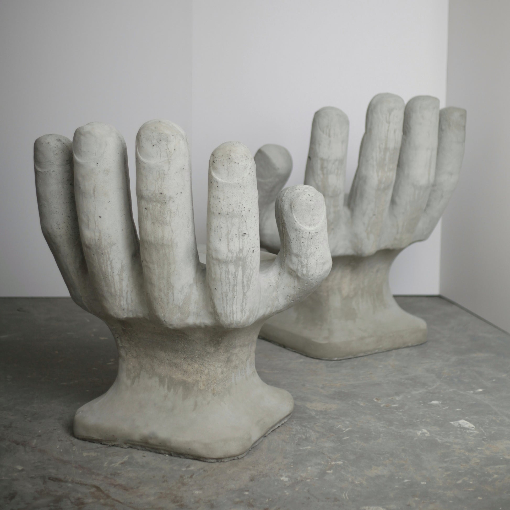 Set of 2 Abstract Sculptural Concrete Art Outdoor Seats Hand Shaped