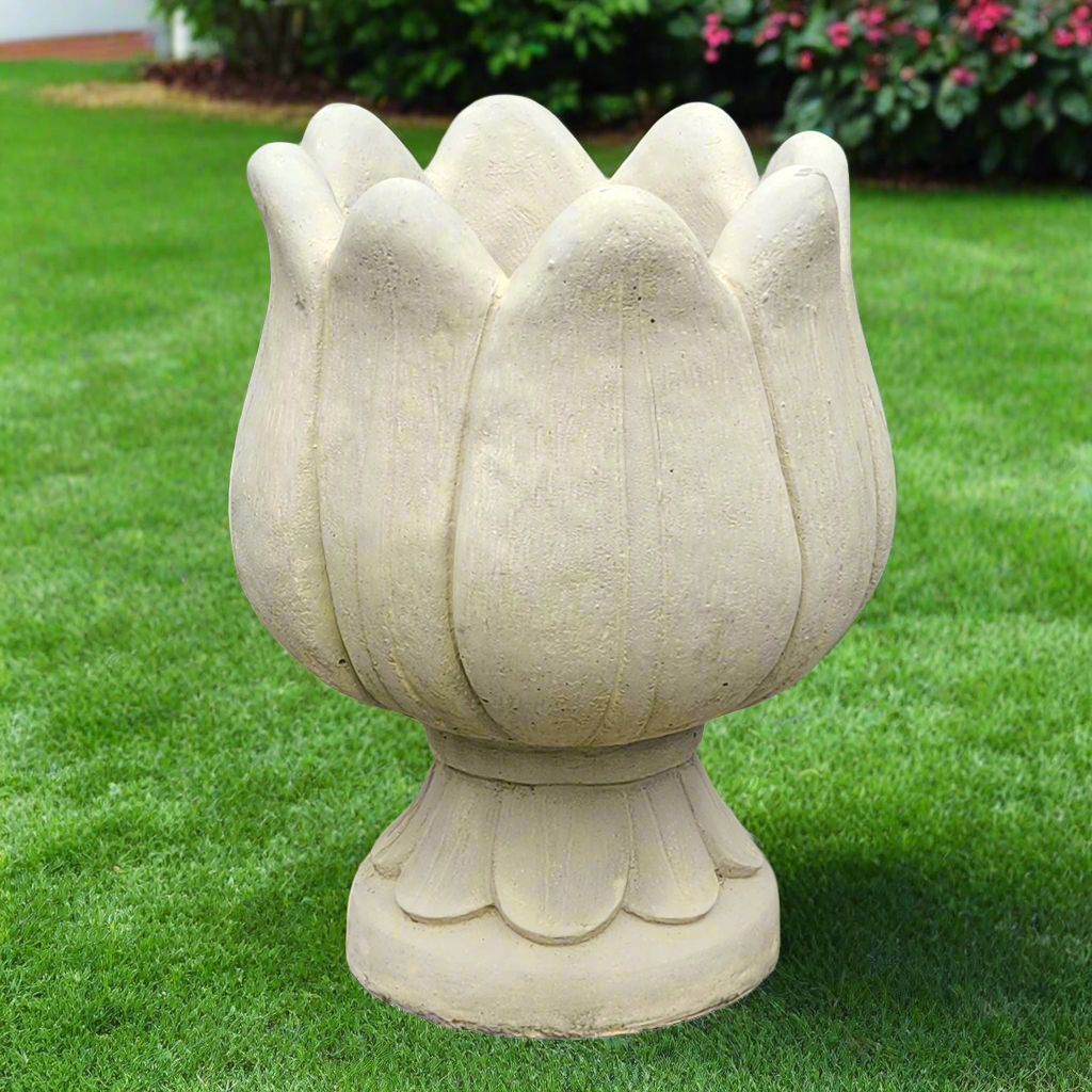 Ideal planters for an entryway, patio, or garden, this Round Tulip concrete planter brings a modern sculptural element. Shaped like a tulip bloom, it can beautifully accommodate different styles of plants,
