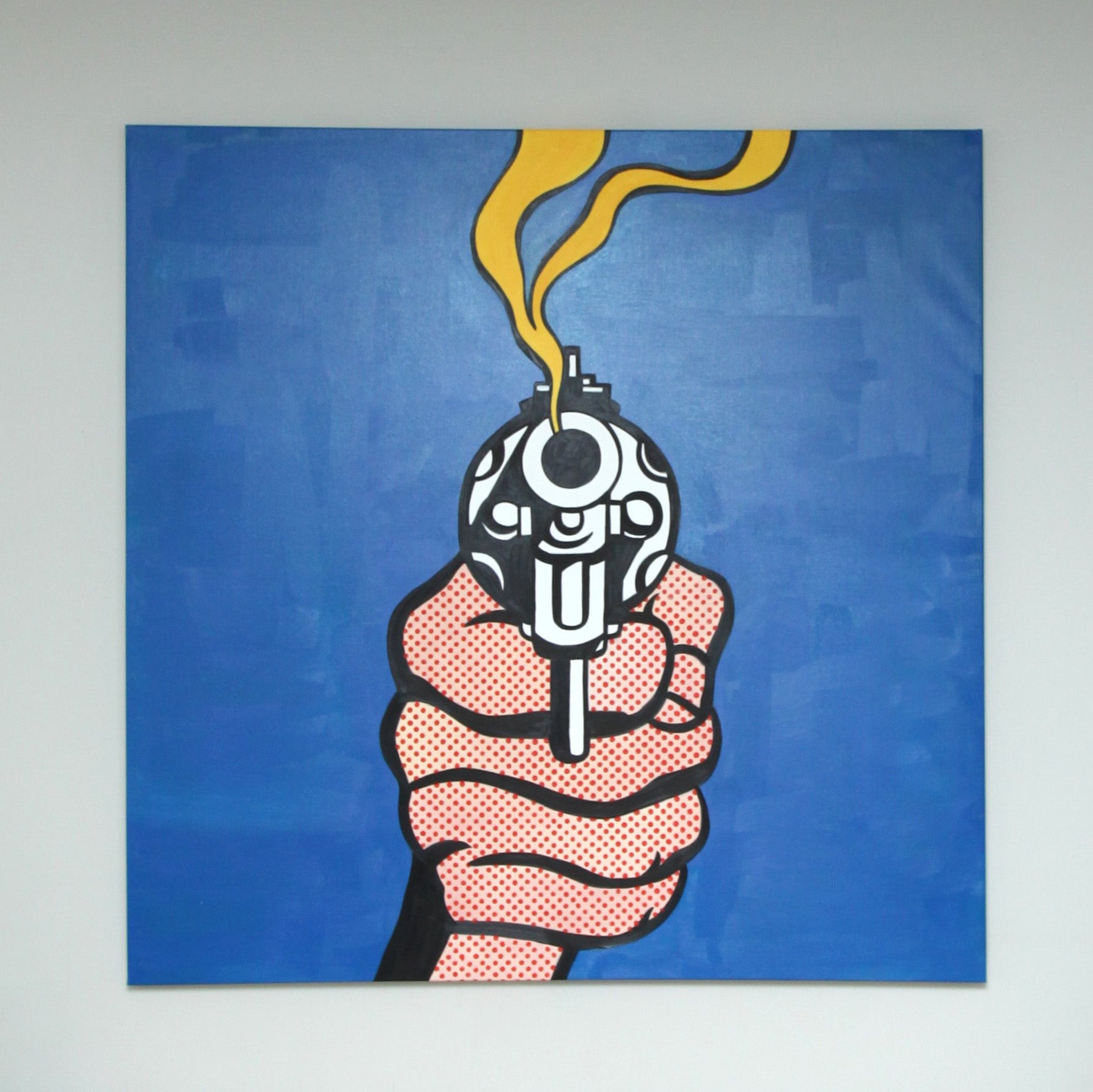 Hand Painted Acrylic on Canvas Art Reproduction | Gun In America by Roy Lichtenstein